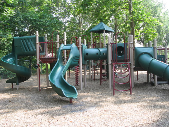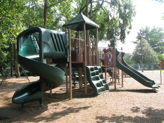 Main St. and Taylor St., Millburn, NJ. A favorite shady park in Millburn, NJ with plenty of benches. Fenced in, and 3 main playground structures. They have a sandbox but no toys. there is a co-op nursery adjacent to the park, and a bench. Adjacent to the playground is a very nice walking area. Information from the Township of Millburn site is: