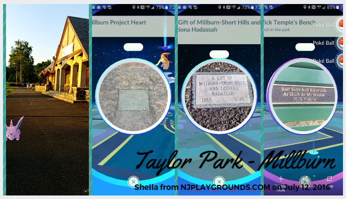 Update: Pokestops at Taylor Park in Millburn! Â We found Pokemon here, and there are tons of Pokestops with the various memorial plaques. Â This can be a bustling park, and there are many young adults around. Â Since this is downtown Millburn, it’s a perfect place to walk around and grab a bite to eat after catching pokemon.