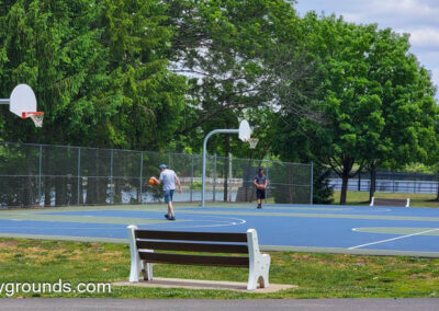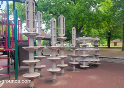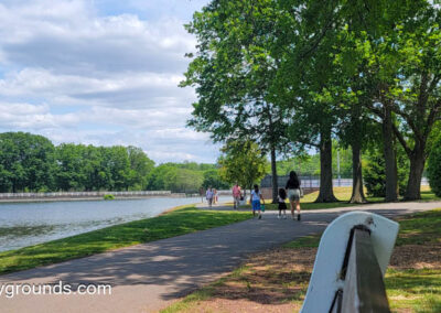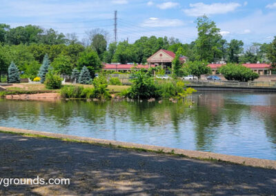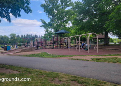 Not only do they have 2 other playgrounds (on the smaller size) but they had a huge lake with plenty of ducks and geese. Great walking paths and other amenities include skating rink and level playing fields for people with disabilities.