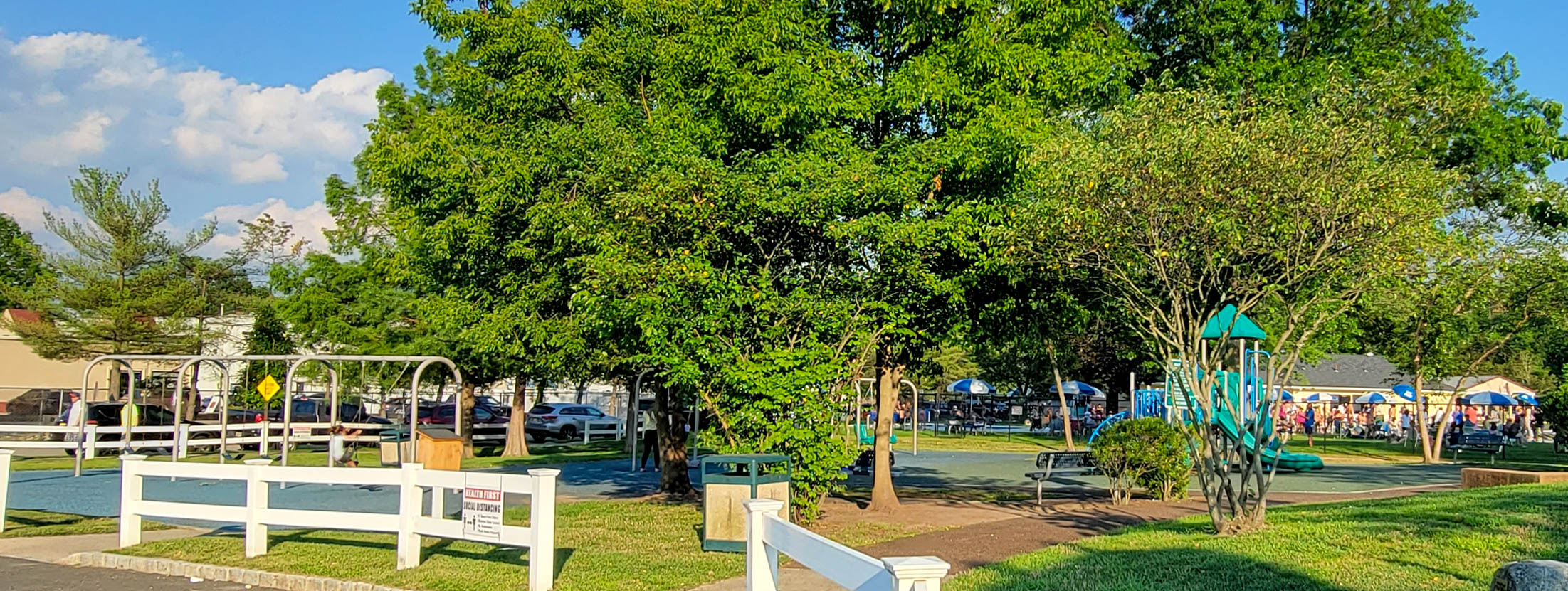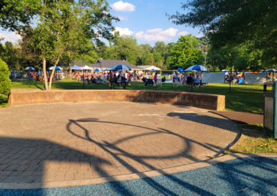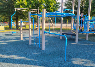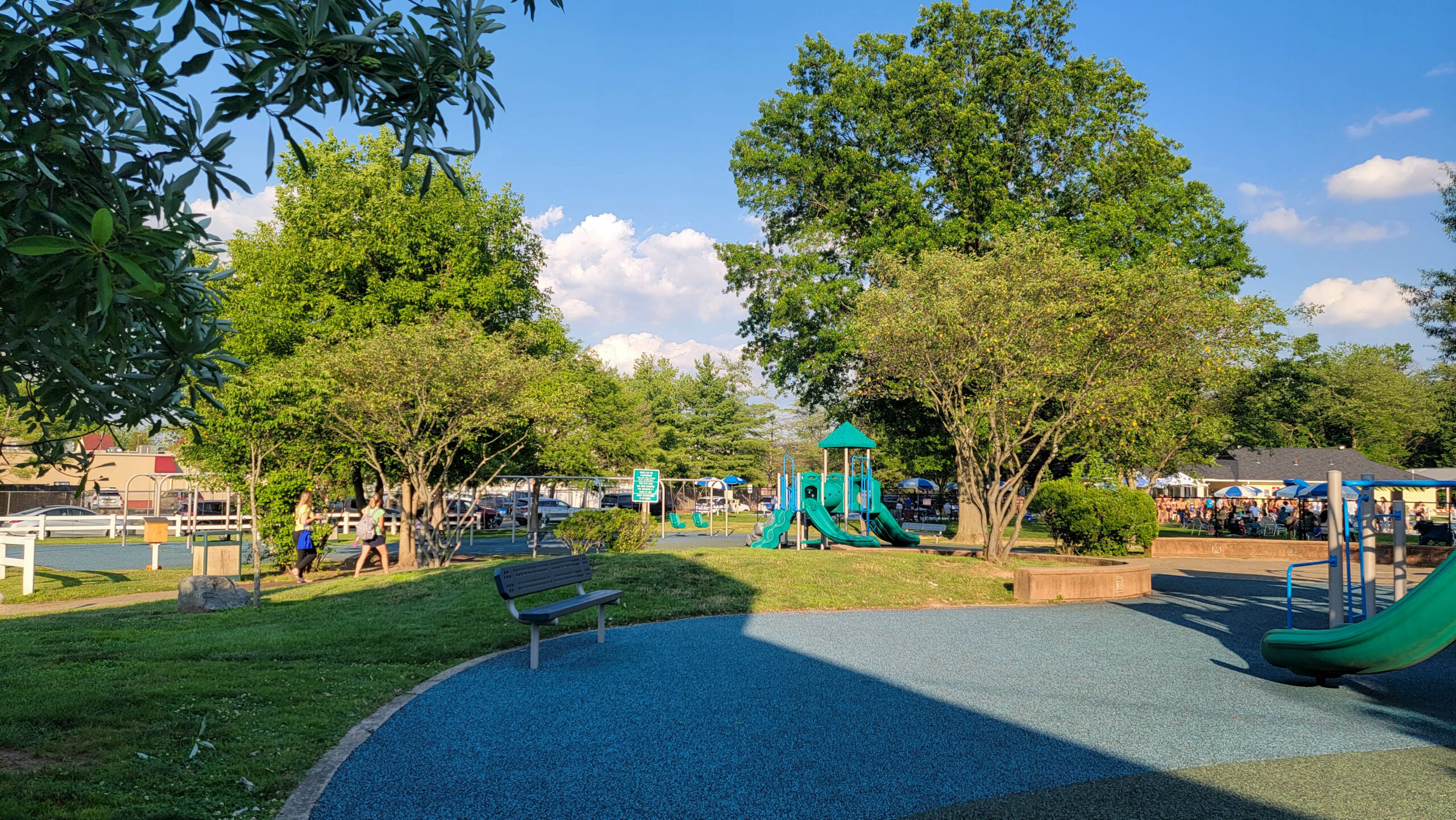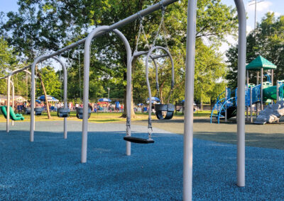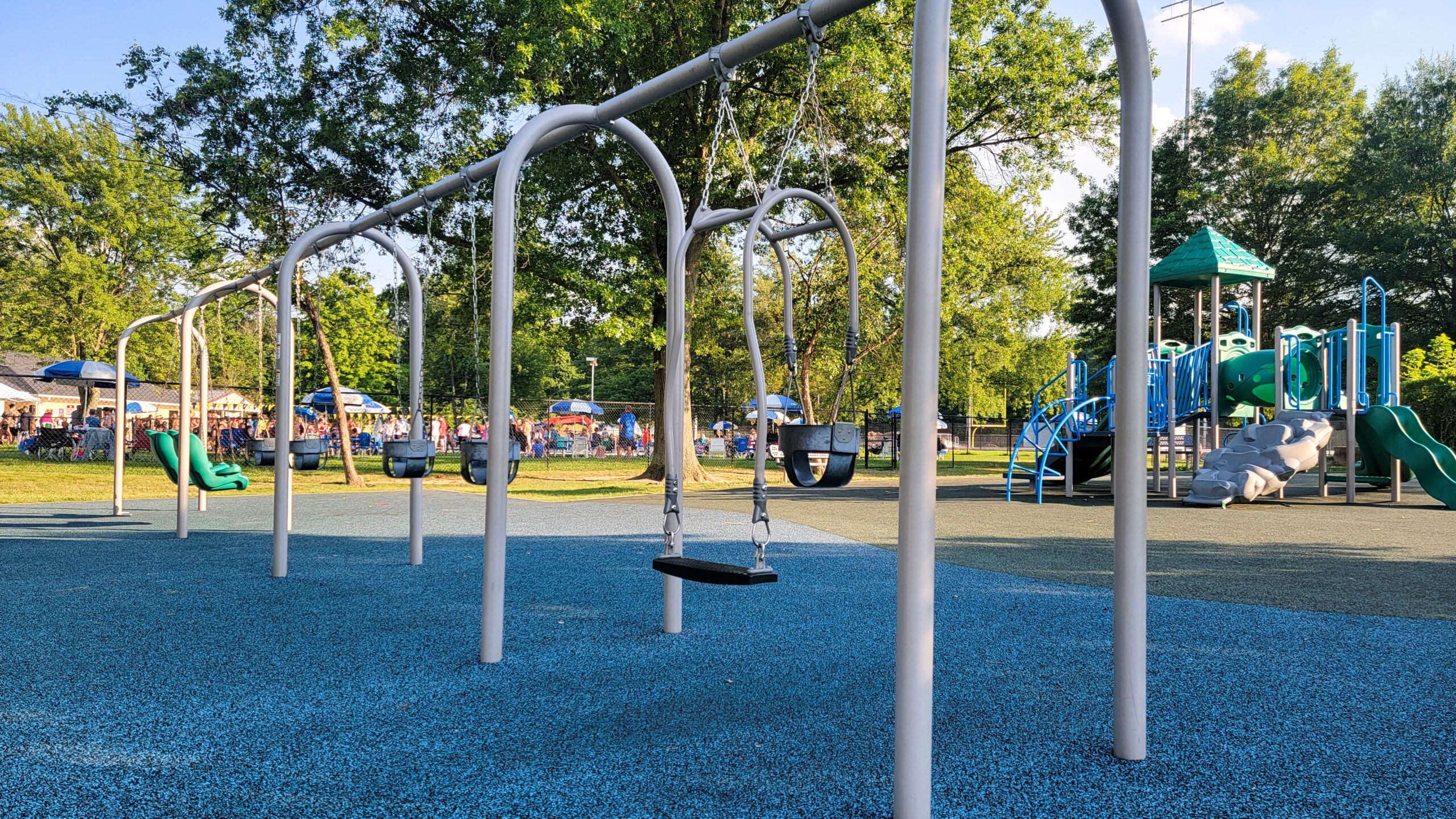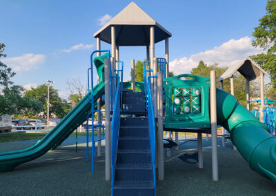 Busy town recreation complex with ball fields, roller rink, tennis, town pool and recreation center. Hosts summer concert nights and Farmers Market. Great playground made of Trex and metal with rubber flooring (very cushiony!) Hosts summer playground programs during the week so is very crowded during the day. Two separate play areas for 2-5 and 5-12 year olds.