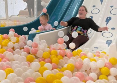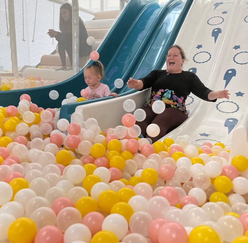 This new play space is colorful, cute, and clean. There’s something to do for everyone and I had a blast sliding into the ball pit with my big kid.