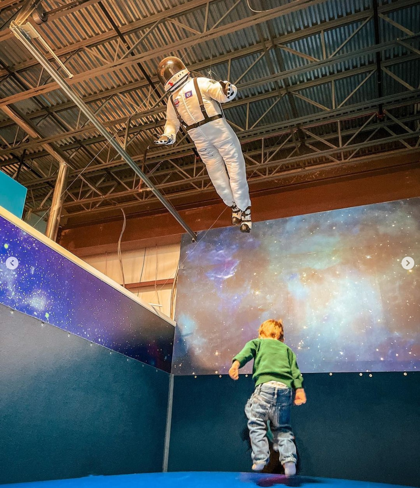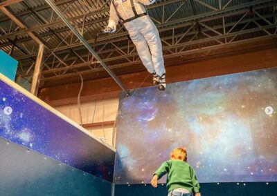 When you enter to play, your little ones can find a firetruck, supermarket, interactive virtual play floor, an infant/toddler area, the beautiful treehouse, a castle, and the amazing moon bounce with the friendly astronaut keeping watch in the cosmos.