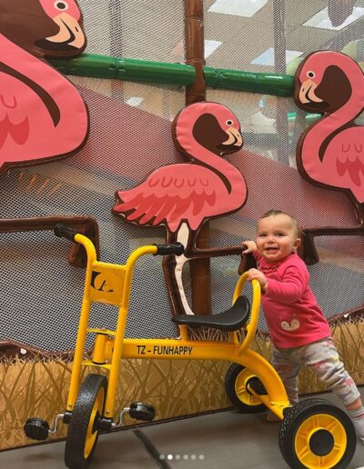 There are slides and little bikes and climbing walls to challenge the older ones.