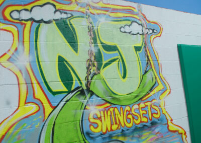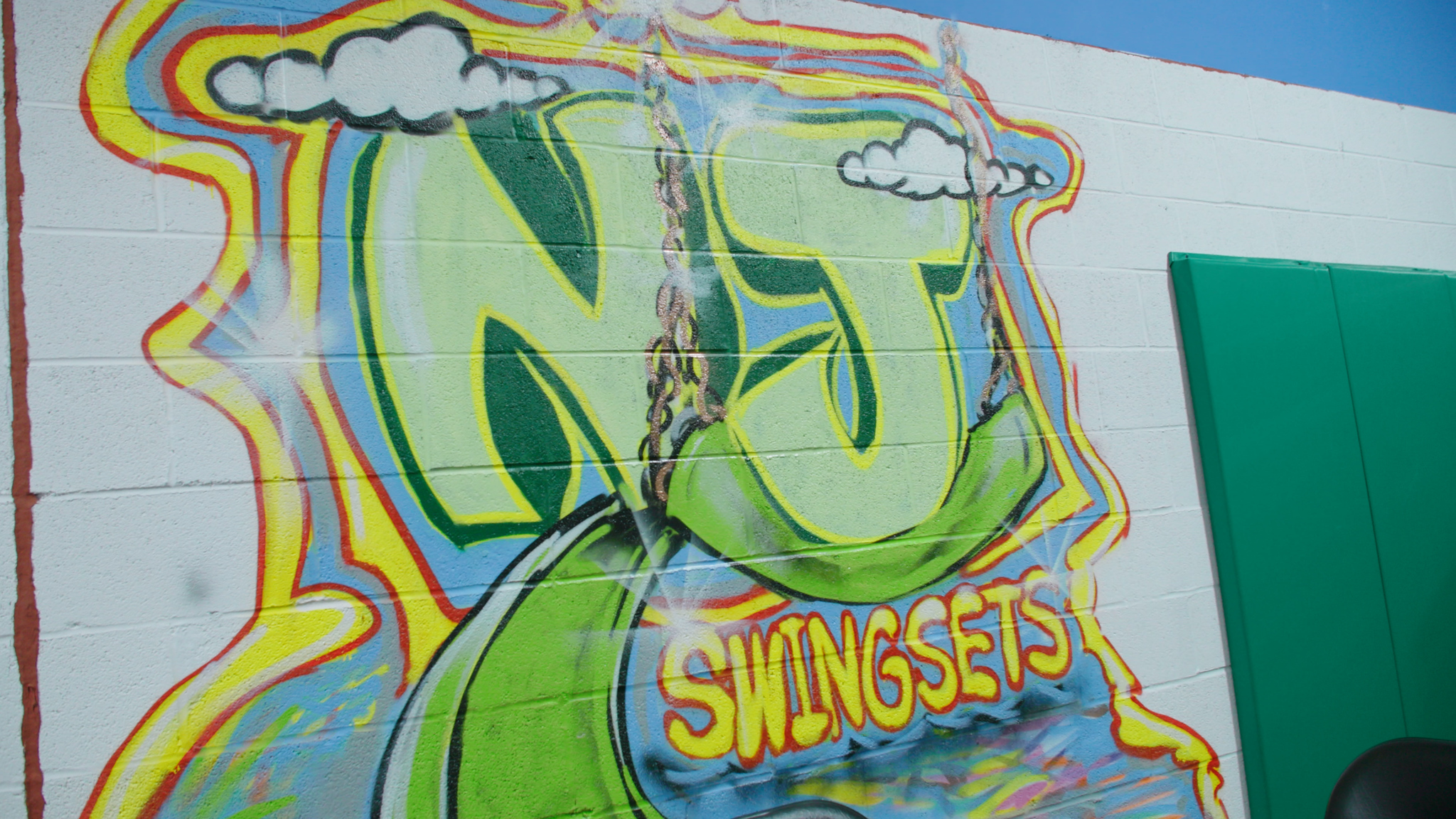 Showroom has 6 LARGE swingsets with a wide array of different features such as rockwalls, bridges, slides and tube slides.