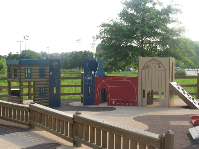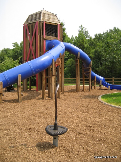 An incredibly diverse, clean, fun, well designed playground with four distinct play areas and something for everyone. It has got an ‘amusement park’ feel. It could be the largest playground in all of Morris County. It has a beautiful farm theme and tons of variety in the equipment. Tall tube slides are super-adventurous and there’s great climbing for older kids, an imaginative play area for smaller kids and hand-cap accessible swings that can hold wheelchairs. This playground is definitely a top 10! Bathrooms next to the playground would make it perfect!