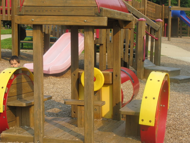 This playground is pretty awesome! Not much shade and it’s size sure does . . . um . . . encourage parents to get some extra exercise, but there’s a huge slide that is tons of fun (for me AND the kids!) and plenty to do to fill up an afternoon. No one gets bored. Not even Mommy.