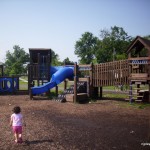 It is not obvious, but you can park right next to the playground by the bike racks. The playground is aging but not dangerous, and usually empty. There is a baseball field here, and a nice (sunny) walking trail around the park, where you can see a cannon, a gazebo, and the berms created for flood control (Bound Brook has had a hard time with hurricanes in the last several years). In the distance you can see trains going by.
