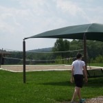 – huge sand pit with communal sand toys. And if there are no babies playing in sand, it can be used for a volleyball game with older kids or fellow parents.
