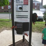 Mira from MiraBest.com, had suggested this park to visit, so I did! It was great, however I made the mistake of forgetting a very important cross-street, Lewis. So it took a call to the Parks & Rec Dept. to find it. Bring some change to feed the meter. Restrooms right next to bocce court. What a nice park, and they a really great “Life Trail” designed for wheelchairs. They have a great spongy floor on the main playground, and I committed a major faux pas by not taking pictures of the other part of the park which had some other equipment that might be ADA 🙁 I will get those pictures, since visiting Fort Lee means visiting my chocolatier friend, Dina. Very picturesque, great walking square, and frequent ice cream trucks still in September.
