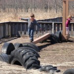 CLIMBING: Rings, tires, steps, chains, fireman’s pole, two climbing walls with rubber-covered repelling chain
