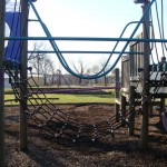 CLIMBING: Rope bridge and cargo net wall, parallel bars, tires, jungle gym, steps, chains