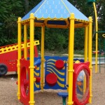 DESCRIPTION: A bright, brand new playground built by Kaboom! in partnership with the local community and the YMCA. Many unique play features, including a fire truck that fits several kids and a musical gazebo featuring bongos, bells and more. Bathrooms, drinking fountains, and vending machines are available in the building when the YMCA is open.