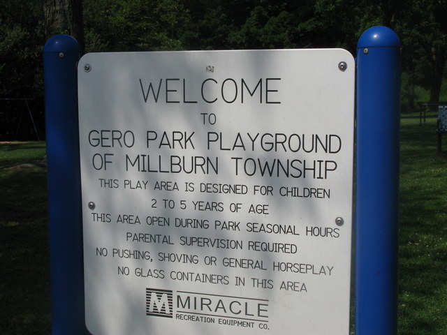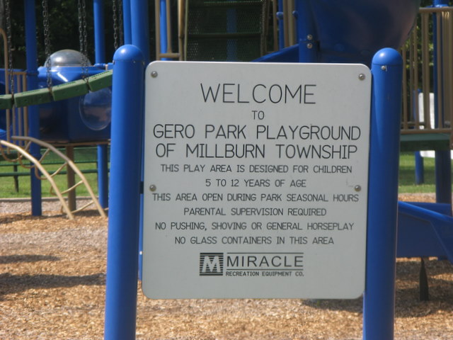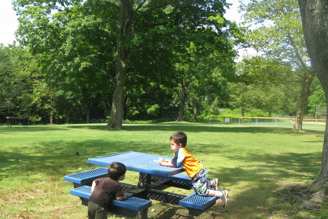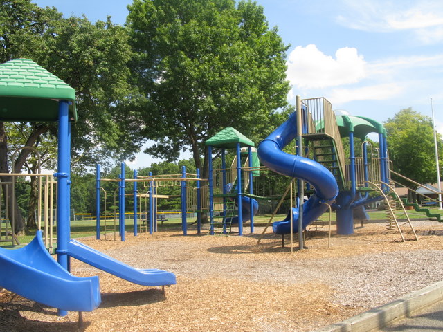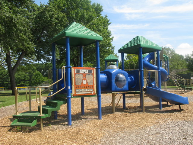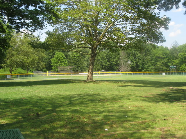 White Oak Ridge Road and Parsonage Hill Road, Millburn, NJ. Sunny park (boy, does NJ have some really hot days) surrounded by tennis courts and ballfield, and basketball court. Has a swingset off in the distance and a grill. For both pre-school and school-age.  The Millburn pool is right next to the park, and i think the townspeople were wise enough to go there for the day we went, so we had the park to ourselves.