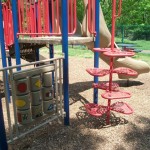 The park is completely fenced and far from the busy road. They have two nice climbing structures for little kids, including one that is in three sections, each separated by a “mushroom”, which fascinated my little ones.