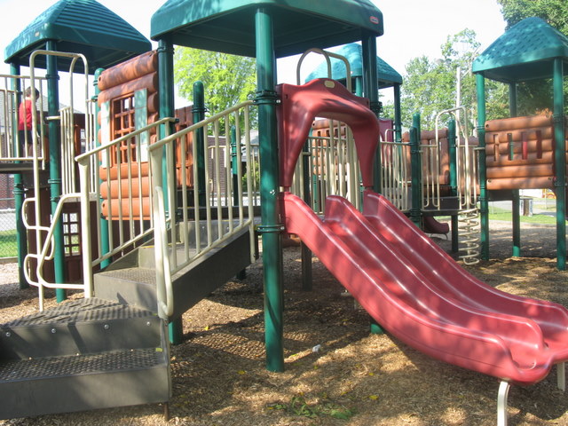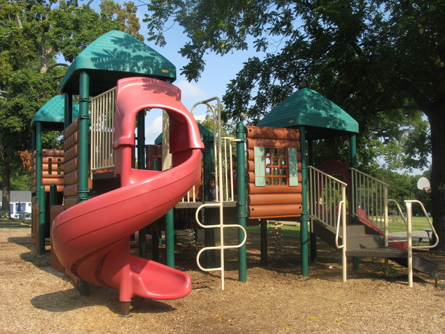 214 Main Street, Chatham, NJ- located in the back of the library.  Great playground for toddlers. The kids had a great time, plenty of playground equipment adjacent to a fenced in pool (for town residents).  Really nice people were there this past Sunday.  I really enjoy Chatham parks.  Partially fenced, and there is a basketball court and ballfield there too.