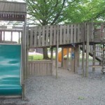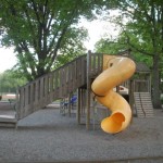 Columbia Park, at the east end of Orange St. off South Washington Ave. in Dunellen, Middlesex County has a spectacular running track next to an interesting, shady, wooden playground.