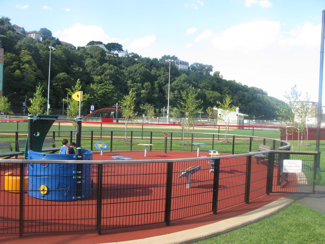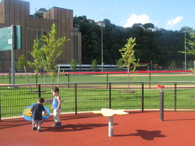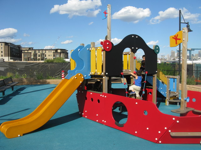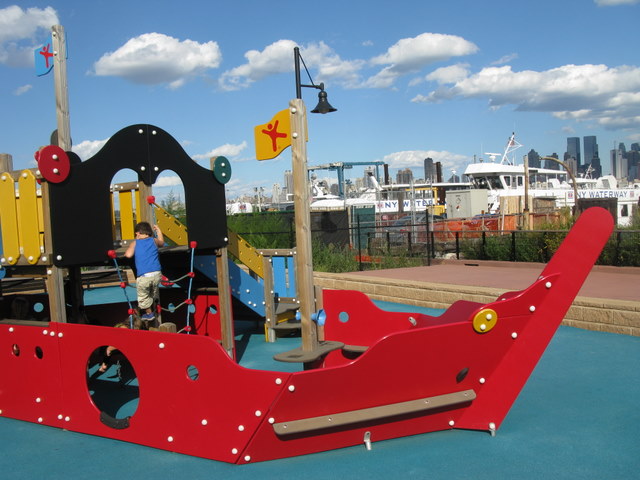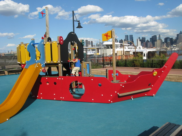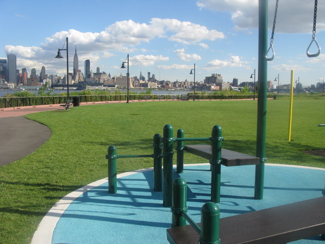 Coming from 495E from the Hoboken/Weehawken exit, make a right on N. marginal highway and then make a left on Baldwin Avenue and then a left on Port Imperial Blvd. You’ll see the park almost immediately on right-hand side by the water amidst the ballfields.Â