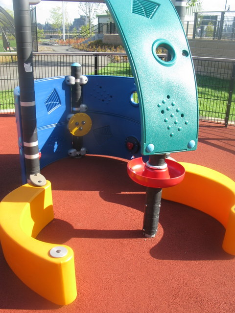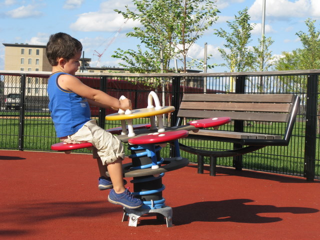 There are stairs that lead down to it from the parking lot for one of the ballfields, but there is also a small parking lot right next to it.. There are 2 areas both with spongy floor, one is a toddler play area and the other is a small playground ship that the kids can climb around in. It is a small playground, but it has a nice breeze. Also what is neat about this playground is despite the size, the Light Rail train passes by every few minutes, so if you have a train-lover they get to see and hear the rail road crossing from the playground.. One of my pics, you can see the light rail in the distance. Restroooms are right by the track/ballfield. THANKS BEVERLY FOR THE RECOMMENDATION!!!!