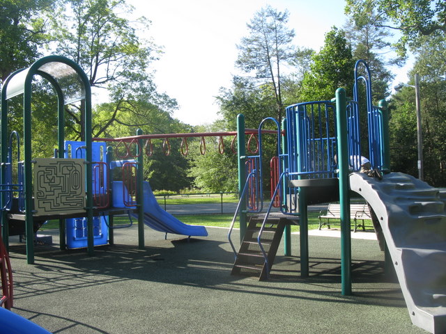 Bloomfield Avenue and Lakeside Avenue, Verona, NJ. I love this park, it is absolutely beautiful with a lake nearby, place to run (I used to go here a while back but pre-kids so never noticed the playground) and a beautiful flower garden next to the playground. A very popular playground, so parking is scarce. Also there is a place to get food by the lake, and there are restrooms closer to the lake house. 2 separate playgrounds next to each other, the one closest to the flower garden is the pre-school one. Here are a few highlights: