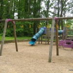 Climbing: Plenty of bars, fireman’s pole, rings, log bridge, crescent shaped steps, tunnel of bars