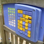 Playthings: Tic-tac-toe, rotating color blocks, benches and molded handprints