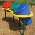 Playthings: Steering wheels, music center with bells and oversized drums, call boxes, mirrors,