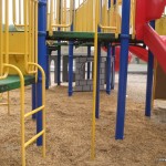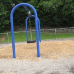 Handicap: One chair shaped swing at top playground, mulch ground cover, a bit of a hike from the parking lot