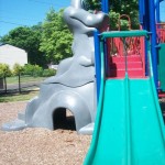 Columbus Park Playground is located near the corner of Mansfield Rd. and 11th St. in Piscataway, Middlesex County. It is a shady, dino-themed playground in a park with just about every kind of sports facility you can think of.