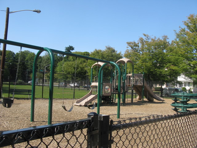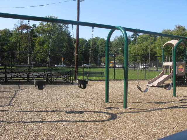 Thanks Nancy W., a fellow Yelper (www.yelp.com) from West Orange. She mentioned the playground in a review for Schneider Hardware nearby. This is a pretty small playground, fenced in, good for toddlers, and 4 “bouncy” seats, slides and a few swings. If you are in the area, I’d suggest to stop in, esp. if you are shopping with kids, but wouldn’t make a special trip here. Would suggest Degnan for a bigger playground to meet with friends.