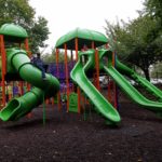 This park tends to have a decent amount of shade in the summer, which is always nice. We pack sand toys for the kids to play with, too. We love this park, with the sole complaint that the littlest kids can access the “older kid” equipment a little too easily. You have to pay attention to your toddlers, because the equipment is designed to sit very high above the ground (8-10 feet!). This isn’t the kind of park where toddler moms can really chat and not watch their kids like hawks. (Come on, you know what I mean!) Overall though, I’ve been coming here for years and years and love it!