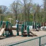 Located on Ramapo Valley Rd & Twp Recreation Park Drwy in Mahwah, NJ, Continental Soldiers Park has a brand new field and playground. This recreational area has a football turf stadium, a pavilion with picnic tables, and a skate board park. The playground is right next to the football stadium, completely fenced in with new equipment. There are two separate structures for each age group. The playground area also has a tent structure that covers the swing area providing some shade from this full sun playground.