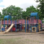 Kidspot Playground at Memorial Field in Rutherford (located on Darwin Ave.) is a huge playground at a dead end area of a town recreational complex. The playground is two stories of bridges and ramps. It is handicap accessible and has lots of small areas to maneuver and play in. There are puzzles and tunnels galore.