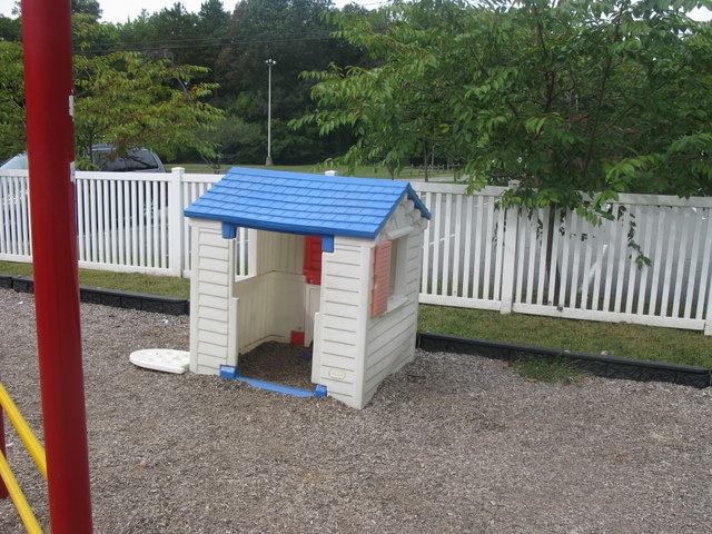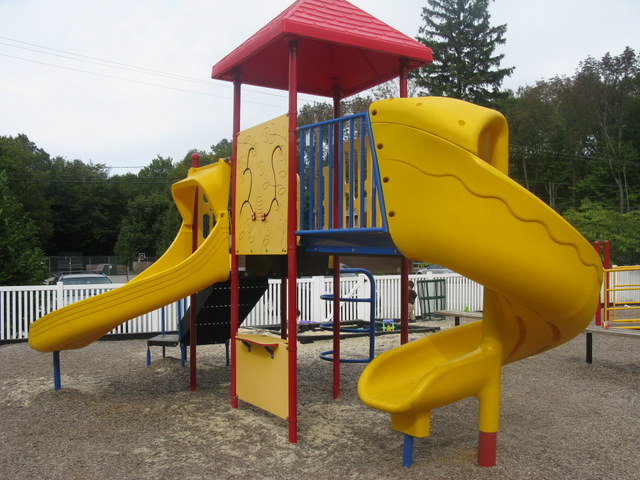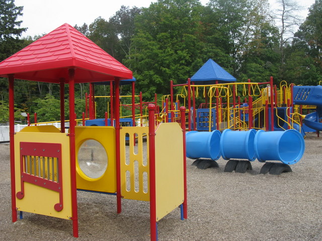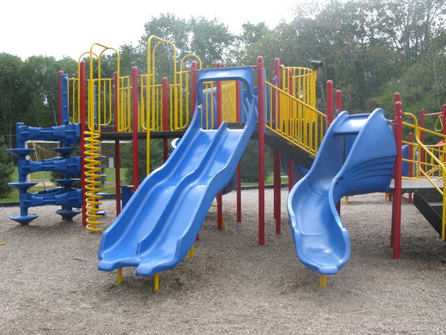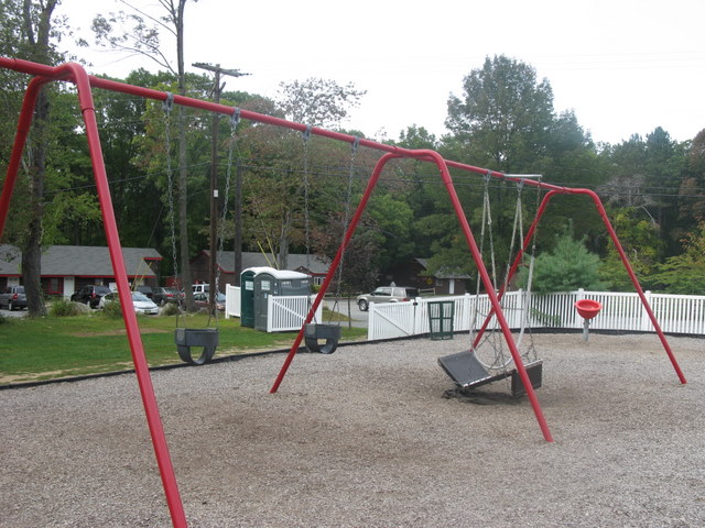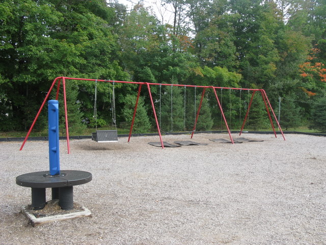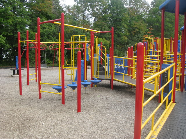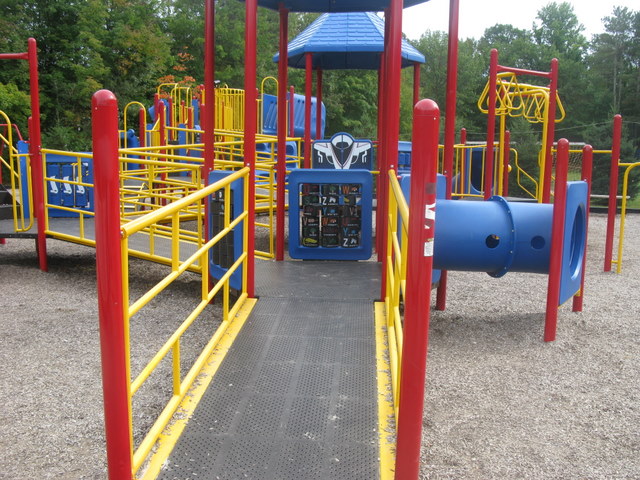 Handicap: There is one wheelchair swing and a good portion of the equipment is accessible by ramp