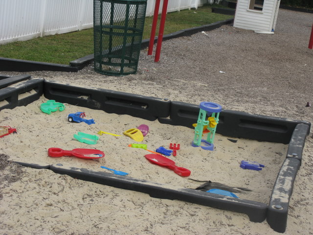 - Sandbox with toys to share
