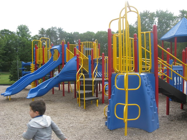 We loved this playground, especially the spinners. Just a note: the skate park across the street is now (summer 2009) closed for safety concerns.