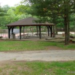PICNICKING: A pavilion shelter with tables and scattered tables throughout the park area