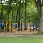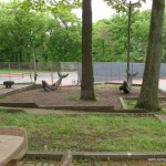 Glen Rock’s Wilde Field Playground has 3 distinct playground areas. One small toddler fenced in area with Little Tykes equipment. The other two sections are together but for different age groups. The area is nicely shaded under tall trees with lots of climbing. The equipment offers something for everyone with the different levels of play. The play areas are centered between baseball fields, tennis courts, and basketball courts.