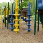 CLIMBING: One corkscrew pole, monkey bars, wiggle poles, rock wall, parallel bars, rings, three climbing mushroom poles, half moon climbing bars, cement dolphins and turtles for climbing