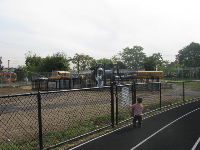 Well, now they have redone the field, and it looks great and they have included a new small playground. Depken field actually borders on Rt. 17 (fenced away from it of course). Tiny playground adjacent to football field, with 2-5yrs, and 5-10yrs in one structure. It is completely fenced in with magna-latches on both entrances, with that shredded rubber tire material on the ground surface. I do not like that the benches are outside the fenced area, but that is my personal preference. The adjacent football field/track was recently redone so it is in excellent condition. Restrooms are closeby. Some tasteless graffiti in the kids tunnel, that would go over little kid’s heads, from some observations, lots of older kids hang out here after school.  Take a look at the pictures to get a good look..