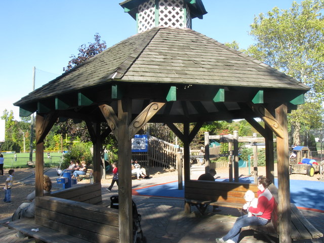 Picnicking: Picnic tables just outside the playground area or use small central gazebo