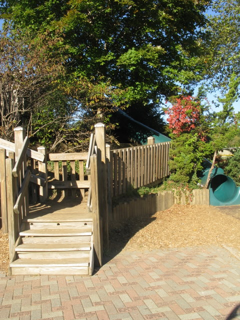 Fantastic playground, fenced in, with obstacle course leading to a choice of 2 big slides (steeper) for the bigger kids. Parking lot next to playground. Central gazebo positioned so you can watch all the action. The only drawback with my kids is that the big slide structure blocks visibility to the swing area when the little one is on the little stationary train. But it is comforting to know it is fenced in, that I didn’t worry. Great tire swing, and other swings (other swings not pictured here). Restroom is outside playground area but close by. Climbing after the little ones in the 2-5 structure is a little challenging since it isn’t straight stairs, and there is a tiny little clubhouse in it that is perfect for kids not adults. I highly recommend Gardner, even though it is pretty packed, the kids have a great time here!