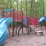 Description: A very shady playground in a wooded area with bathrooms nearby. When we visited there was nobody there. My kids and I love hiking on trails and Turkey Swamp Park has plenty of them, from easy to more difficult. There are other playgrounds in the area but we weren’t able to visit. The playgrounds were covered with some leaves and dirt so you may want to bring a towel to clean off the slides. Lots of nature!