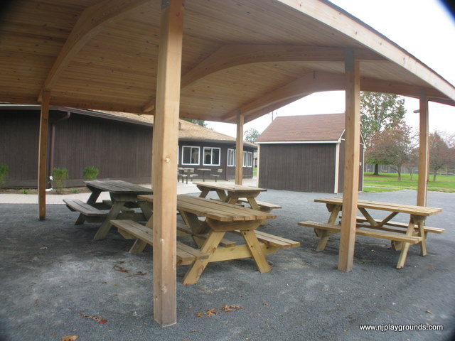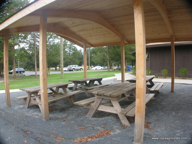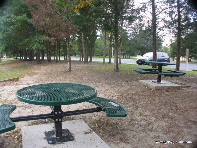 Benches: A few benches are scattered throughout the playground area