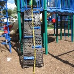 Sgt Frank Pigano Park USMC is an excellent playground with two structures, one for older and one for younger children. Also a swing set, although lacking any bucket swings. There is plenty of shade at this playground. The structures are on a wood-chip type base but surrounding the structures are sidewalks. The park is relatively clean. The ‘ramp’ on the large structure is actually very shallow steps which provides an added challenge to the children.