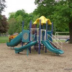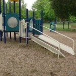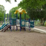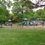 Lyons Park in Upper Saddle River NJ has a very nice fenced in playground with lots of different areas for the kids to spread out. The play area is in two sections for each age group. The toddler section has a ramp for handicap accessibility. There is a fire truck to sit in, along with lots of little bouncers.