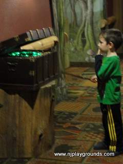 The hotel also features “MagicQuest” which completely entranced my kids and from the looks of it, many others too. You rent (or buy) your very own wand and follow instructions provided in a little book to uncover hidden symbols, jewels and more throughout the hotel. Literally, the hallways are full of kids focused on their quests, helping one another and squealing with delight as they uncover the final item on their quest for a “healing” or “ice” rune. It’s fun to watch treasure chests open to reveal various gold, jewels or crystals and even more fun to watch as kids wave wands at objects that then come alive and move or even speak.