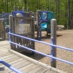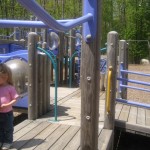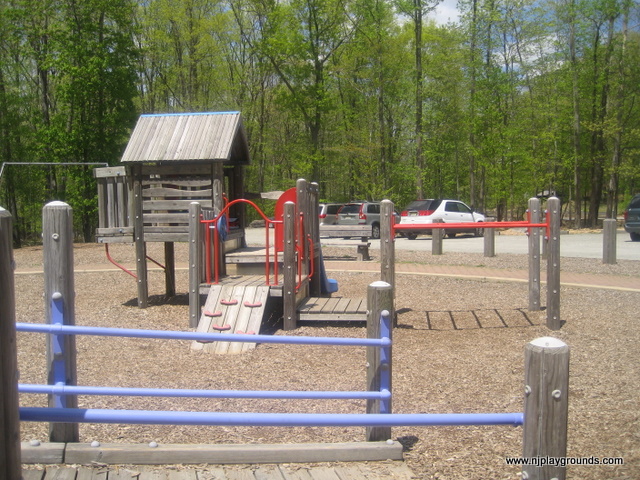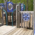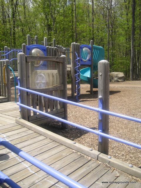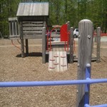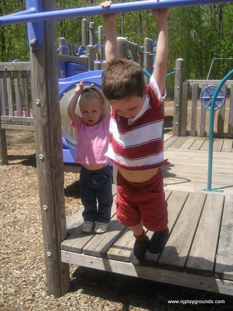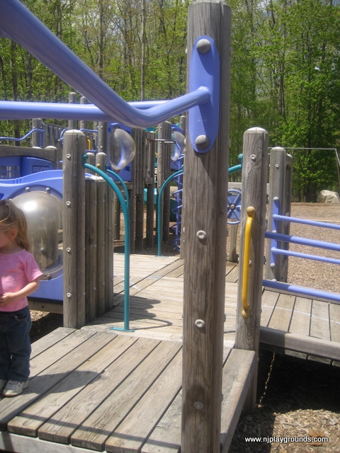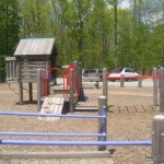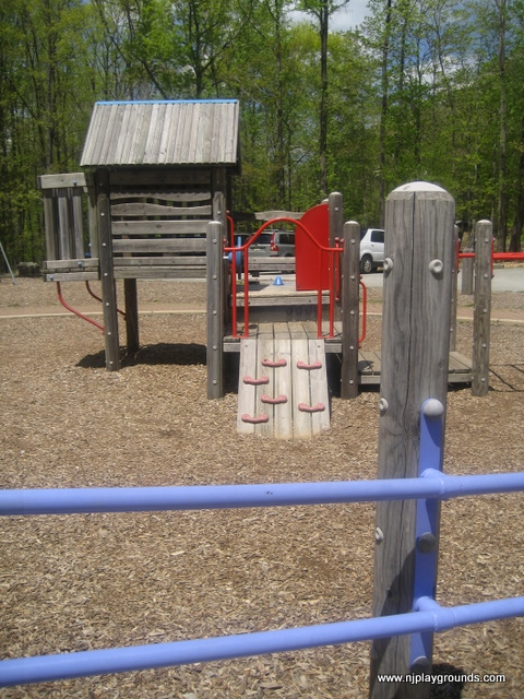 A popular spot for play dates and group meetings. Two play areas are encircled by benches and a sidewalk. There is a small gazebo and some picnic tables as well as walking paths. Surrounded by woods, this playground is in a quiet area and the equipment is toddler friendly.