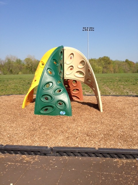 Other Cool Stuff: Rubber flooring by the equipment — we liked no wood chips into sandals — their is a dog park even which the kids enjoyed. Picnic tables under a pavillion. Beautiful paved paths for long bike rides and great stroller exercising