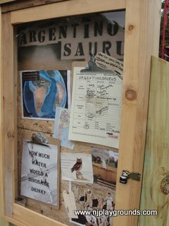 We took note of multiple shelters and lots of props all around the park to help make you feel like you were on a real dig, dinosaur hunt or out observing the wild. There’salso  a large “site dig” made of sand that the kids can explore as part of the Paleontology learning center. There are four learning centers in all… paleontology, geology and ecology, climatology and earth science and an ornithology center. There’s also lots of great signage with fascinating facts.