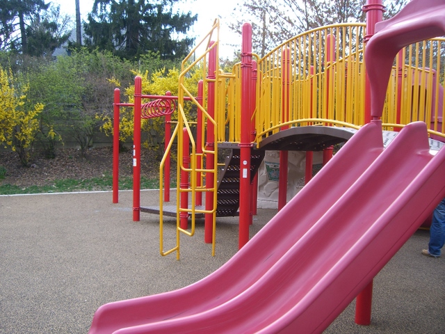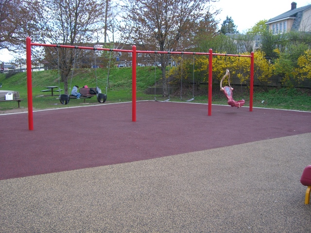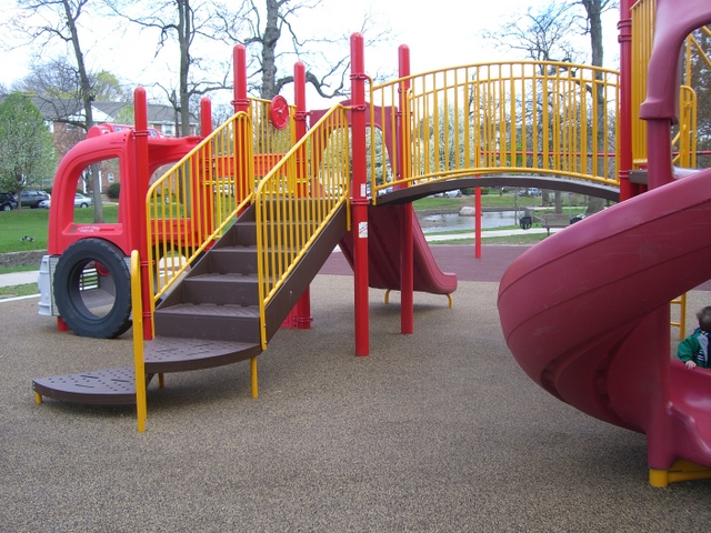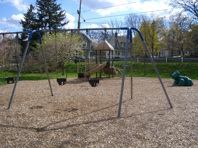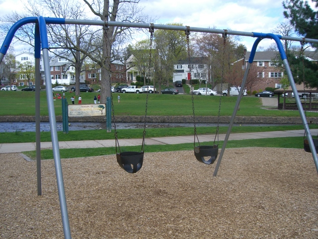 Street parking is on Morris Place behind the park.  The Third River in the background often has lots of ducks and geese and occasionally enough water to justify being called a river. There is no fence, which means for the younger kids that the caregiver needs to be paying attention.  There’s a gazebo, picnic benches and a softball field in the park, but no permanent bathrooms. If you need to grab a coffee or a snack, there is a Dunkin Donuts and 7-11 across Broad Street.
